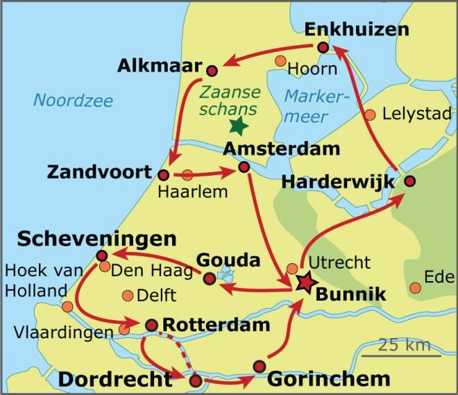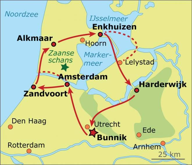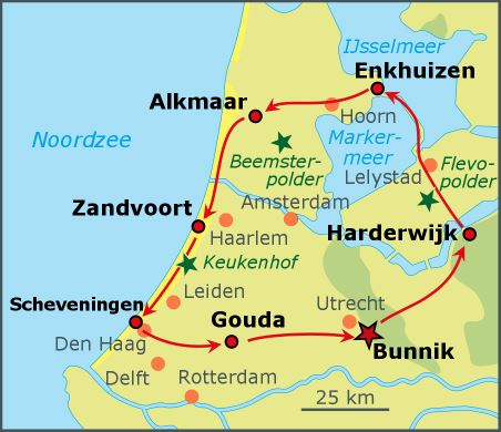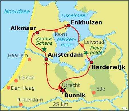 Holland at its wettest and flattest, North of Amsterdam. This part of Holland fits the image that most foreigners have of Holland. Polders, consisting of many rectangles of damp meadows separated by ditches, dikes and canals. This cycle tour will take you to the…